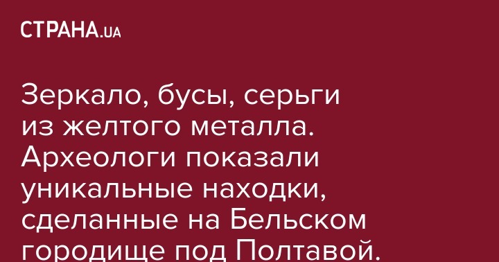 На территории Кателевского района Полтавской области археологи провели раскопки в уникальном, не разграбленном кургане на Бельском городище, где обнаружили множество ценных артефактов, таких как зеркало, бусы, серьги из желтого металла и прочее, передает Укринформ.