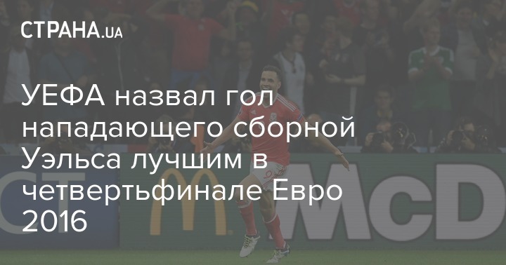 УЕФА назвал гол нападающего сборной Уэльса лучшим в четвертьфинале Евро 2016