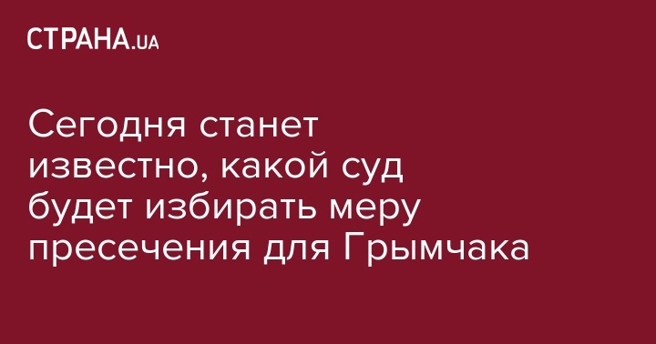 Заместителю министра по вопросам временно оккупированных территорий Юрию Грымчаку сегодня, 16 августа, вручат ходатайство об избрании меры пресечения и станет понятно, какой суд будет избирать ему меру пресечения. Об этом сообщила "Стране" адвокат Татьяна Матяш.