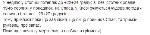 В воскресенье, 18 августа, столбики термометров покажут уже комфортную температуру. Так, в Украине ожидается +24...+29 градусов, однако на севере будет +20...+24 градуса. "С 19-го августа, на Спас...лето начнет возвращаться в Украину снова. Дождей будет немного. В ближайшие выходные вероятность осадков на севере и востоке, дотянет местами до Черкащины, в субботу кое-где на западе. Однако эти осадки будут локальными и вялыми", - сообщила Диденко.