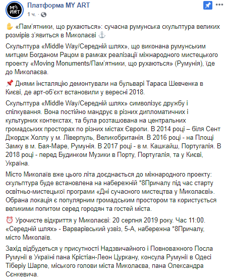 Скриншот, фото: Facebook/ Платформа MY ART