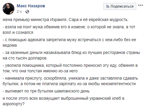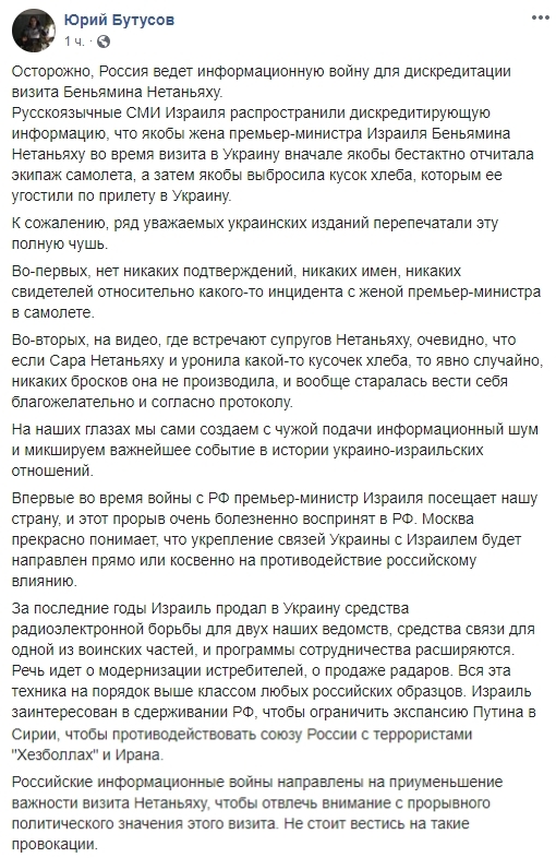 А вот журналист Юрий Бутусов заявил, что ничего такого жена израильского премьера не делала и все это "российская пропаганда".