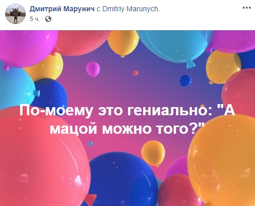 Соучредитель Фонда энергетических стратегий Дмитрий Марунич: "По-моему это гениально: "А мацой можно того?"
