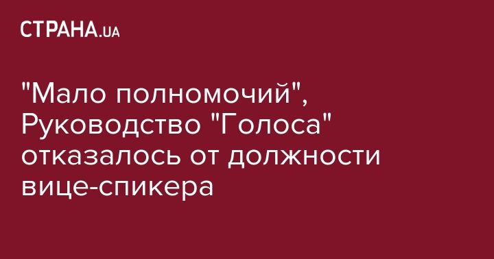 Руководство партии "Голос" отказалось от должности заместителя председателя Верховной Рады. Об этом сообщил заместитель главы партии "Голос" Ярослав Юрчишин.