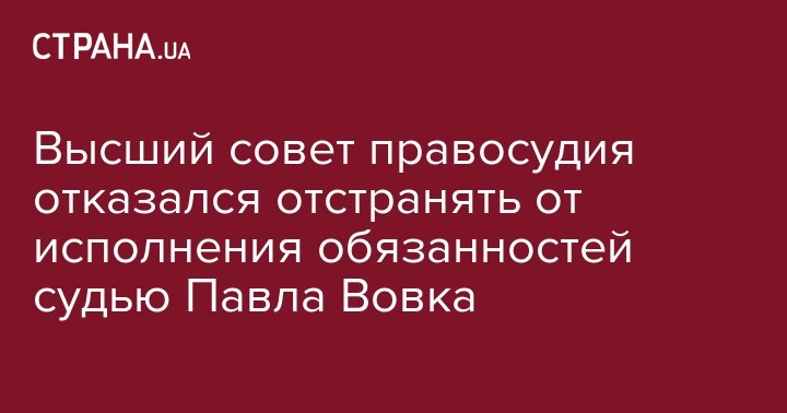 Высший совет правосудия отказался отстранять от исполнения обязанностей судью Павла Вовка
