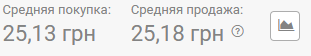 В 12:00 курс был таким: средняя покупка 25,12 грн, средняя продажа -25,20 грн.
