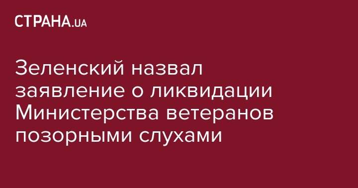 Президент Украины Владимир Зеленский на Втором международном ветеранском и волонтерском форуме, который сегодня, 23 августа, начался в Киеве, заявил, что Министерство по делам ветеранов не будет ликвидировано. Он назвал информацию об этом позорными слухами.