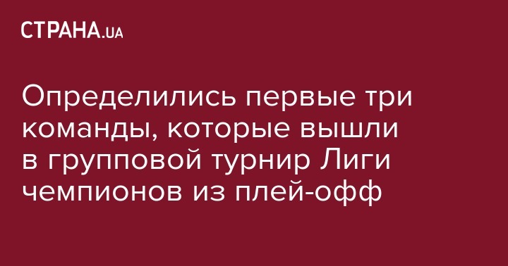 Определились первые три команды, которые вышли в групповой турнир Лиги чемпионов из плей-офф