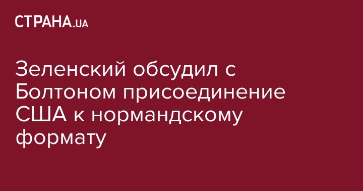 Зеленский обсудил с Болтоном присоединение США к нормандскому формату