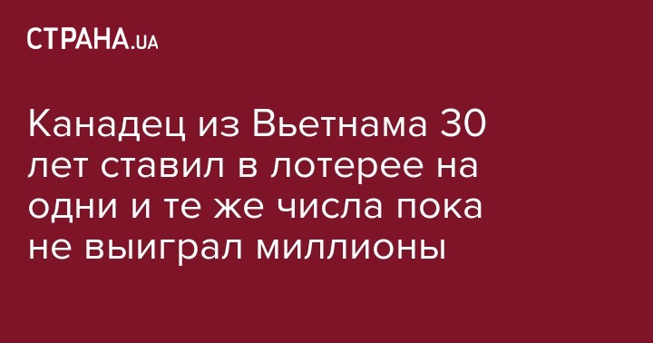 Канадец Бон Труонг, который 30 лет еженедельно ставил в лотерее на одни и те же числа, выиграл джекпот в 60 миллионов.
