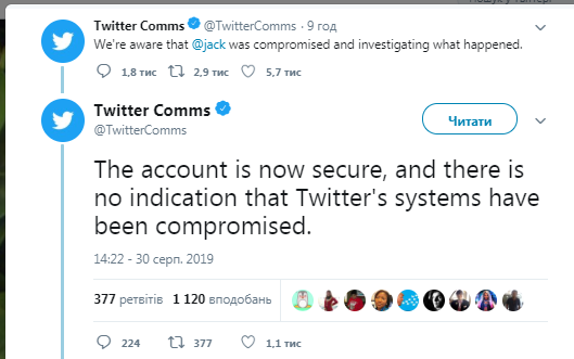 Напомним, что днем 30 августа неизвестные получили полный доступ и контроль над страницей основателя и директора Twitter Джека Дорси и в течение определенного времени рассылали матерные и расистские сообщения более четырем миллионам его подписчиков.