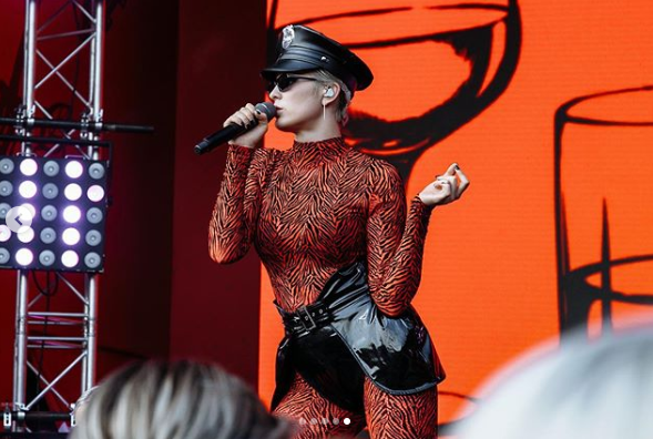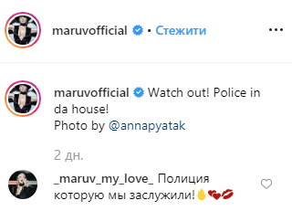 Эпатажная украинская певица MARUV на своем выступлении предстала в образе соблазнительного полицейского. Снимки с концерта артистка опубликовала в Instagram.