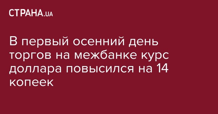 Сообщается, что котировки гривни к окончанию торгов на межбанке составили 25,28-25,295 грн/$1. По данным НБУ, справочный курс гривни к доллару США на межбанковском валютном рынке 2 сентября снизился до 25,2531 грн/$1 с 25,1542 грн/$1.
