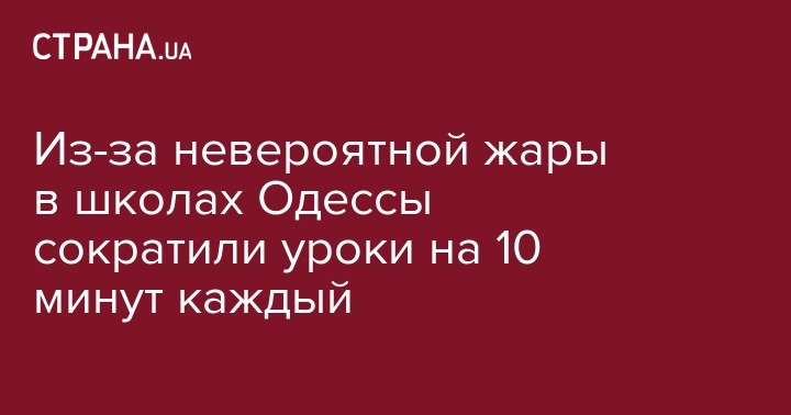 Сообщается, что из-за установившейся в городе жары было принято решение сократить длительность уроков в школах до 35 минут. В последние дни в Одессе температура воздуха превышает +30 градусов.