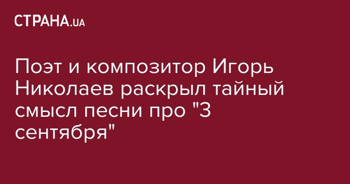 Поэт и композитор Игорь Николаев раскрыл тайный смысл песни про "3 сентября"