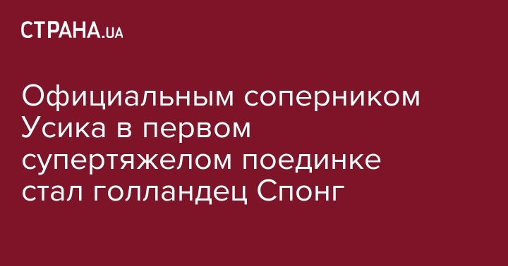 Официально подтверждено, что первым соперником украинского боксера Александра Усика в супертяжелом весе станет непобежденный голландский боксер Тайрон Спонг. Об этом сообщил сопромоутер украинского боксера Эдди Хирн в своем Twitter.