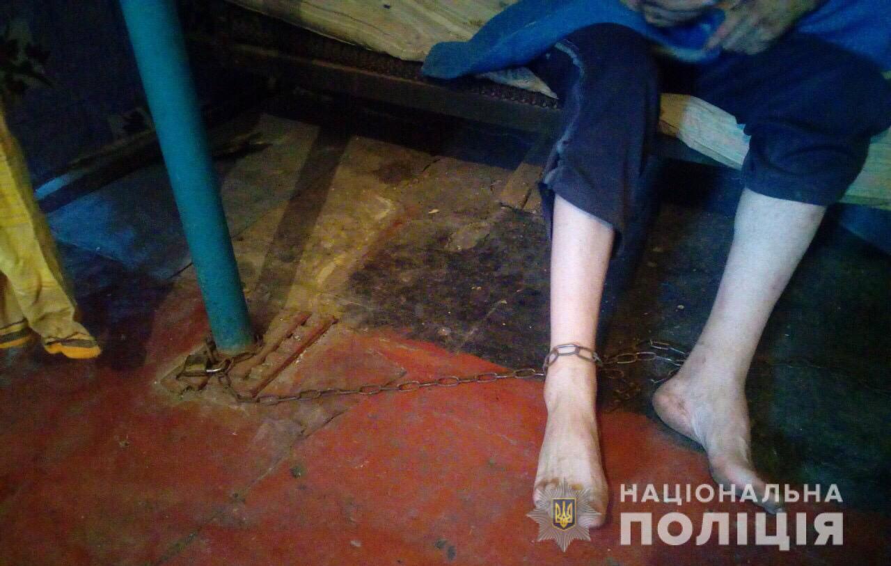 Сообщается, что событие произошло в Солонянском районе Днепропетровском области. Местные жители позвонили в полицию и сообщили, что их соседка держит на цепи собственного сына. Прибывшие на место правоохранители выяснили, что 36-летнего с группой инвалидности родственники удерживали его для получения пенсии.
