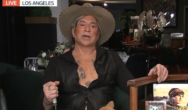 Звезда фильмов "Девять с половиной недель" и "Сердце ангела" появился на британском телешоу, чтобы поговорить с ведущими о своем творчестве.