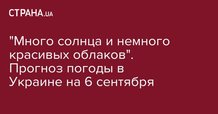 "Много солнца и немного красивых облаков". Прогноз погоды в Украине на 6 сентября