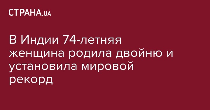 В Индии 74-летняя женщина Эрраматти Мангаямма родила двойню и установила мировой рекорд. Это произошло благодаря экстракорпоральному оплодотворению (ЭКО), передает Daily Mail.