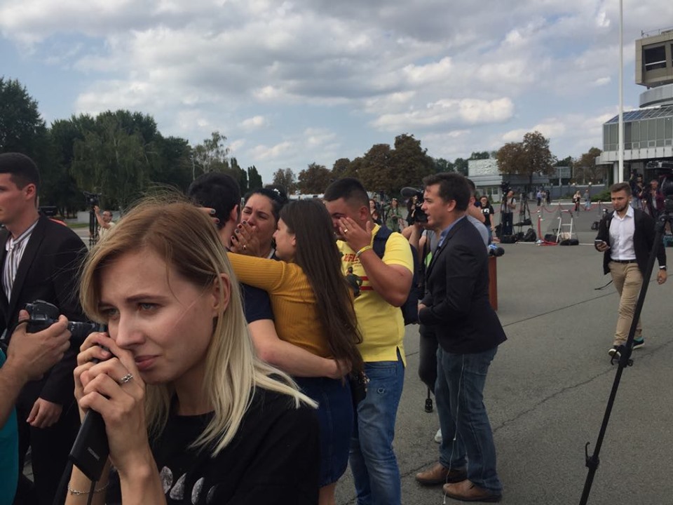 Украинцев в аэропорту встречали первые лица государства, в том числе президент Владимир Зеленский. Также бывших заключенных встречали их родные и близкие. Люди буквально со слезами на глазах кидались обнимать вернувшихся.
