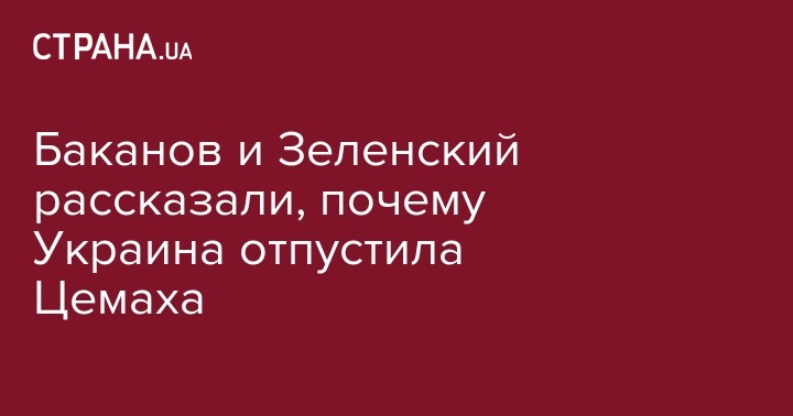 Баканов и Зеленский рассказали, почему Украина отпустила Цемаха