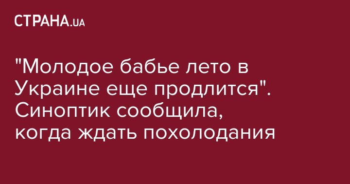 В ближайшие дни в Украине будет продолжаться бабье лето, а вот на выходных, 14 - 15 сентября, значительно похолодает. Об этом у себя в Facebook написала синоптик Наталья Диденко.