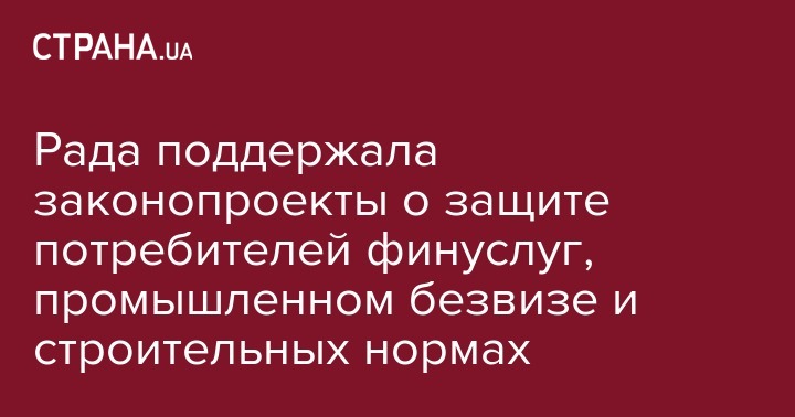 Рада поддержала законопроекты о защите потребителей финуслуг, промышленном безвизе и строительных нормах