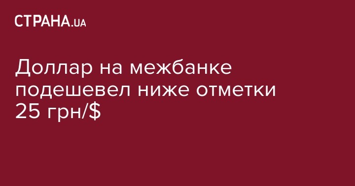 Доллар на межбанке подешевел ниже отметки 25 грн/$