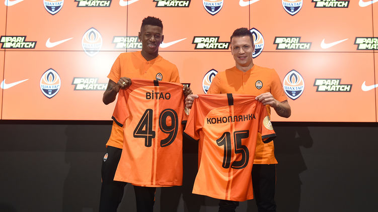 В четверг, 12 сентября, в ФК "Шахтёр" официально представили новых игроков команды - полузащитника Евгения Коноплянки и бразильского защитника Витао.