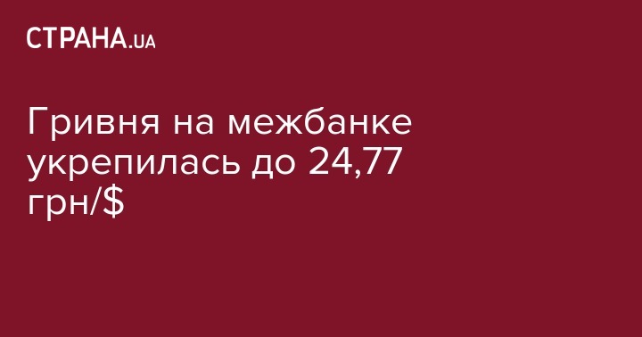 Гривня на межбанке укрепилась до 24,77 грн/$