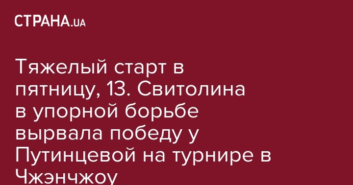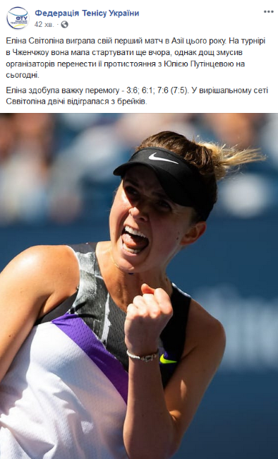Первая ракетка Украины и третья мира Элина Свитолина (которая вчера, 12 сентября, отметила 25-летний юбилей - Ред.) в невероятном по драматургии поединке выиграла свой первый матч в Азии в этом году. На турнире в Чжэнчжоу она должна была стартовать еще вчера, однако дождь заставил организаторов перенести ее противостояние с Юлией Путинцевой на пятницу, 13 сентября.