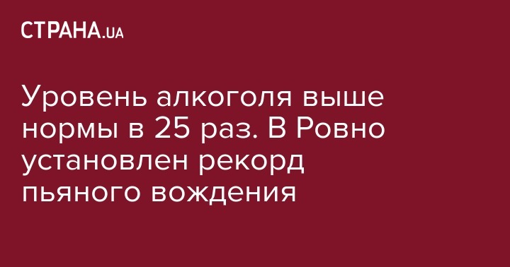 Уровень алкоголя выше нормы в 25 раз. В Ровно установлен рекорд пьяного вождения