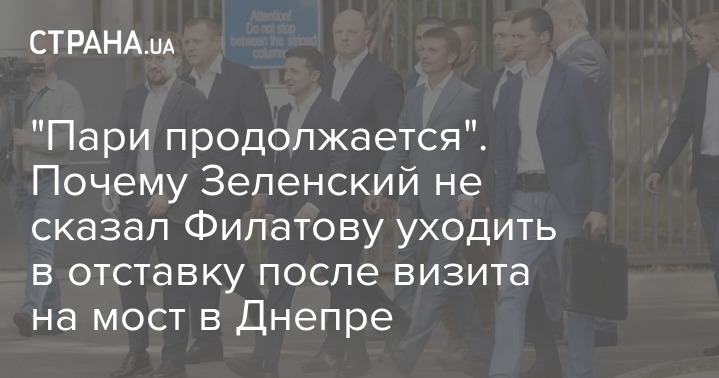 Поэтому, приехав к Филатову, Зеленский начал упрекать мэра за главный городской долгострой - мост через Днепр. В итоге оба чиновника заключили пари - или мост будет достроен до 14 сентября, или мэр идет в отставку.