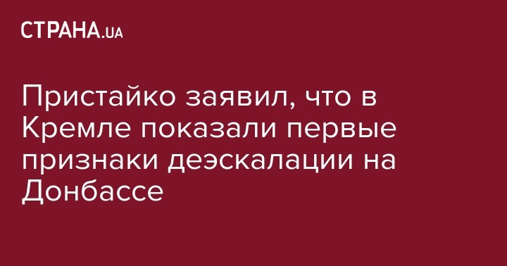 Глава МИД Украины Вадим Пристайко заявил, что в России показали готовность к деэскалации ситуации на Донбассе. Об этом он сообщил в интервью немецкому Die Welt. Также он заявил, что Украина сделала несколько шагов в порядке прекращения огня.