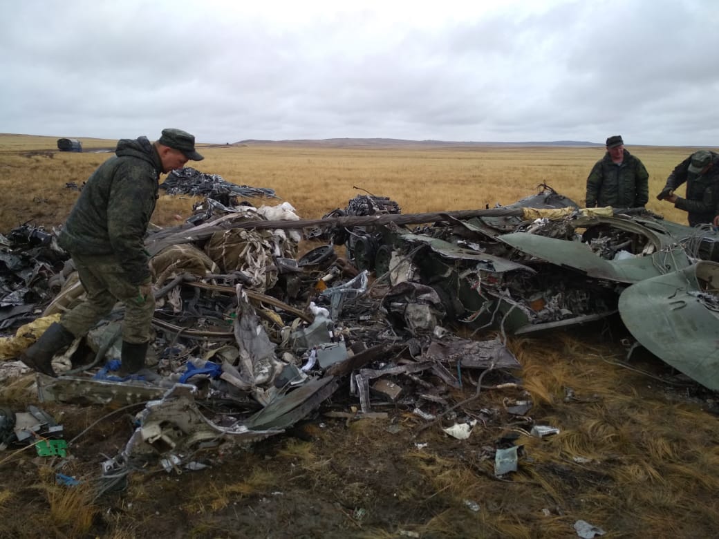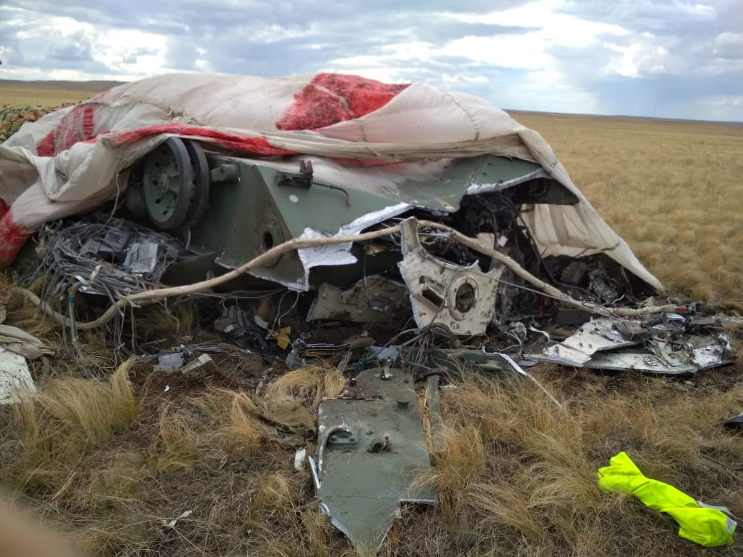 На снимках видно, что от двух боевых машин, которые, по данным российского Минобороны, разбились из-за отказавших парашютных систем, практически ничего не осталось. Их десантировали с самолетов Ил-76.