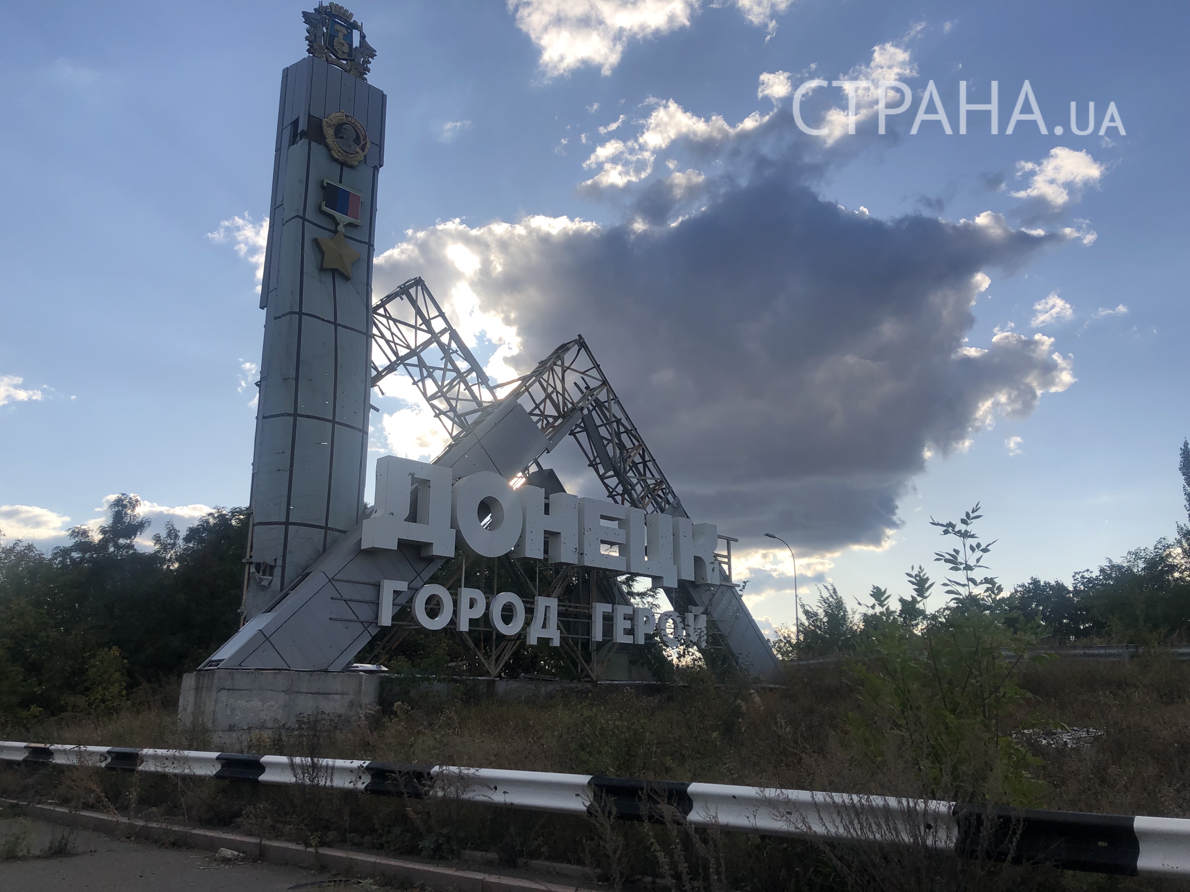"Власти ДНР" присвоили городу звание "героя". Но обстрелянную стелу решили не менять, оставив в память о событиях 2014 года.