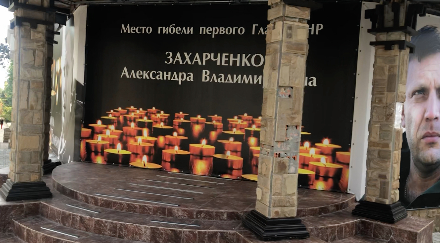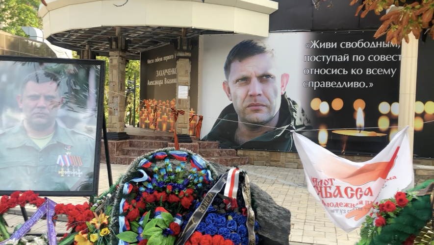 Больше всего на улицах Донецка билбордов с изображением бывшего главы "республики" Александра Захарченко, который был убит в конце августа 2018 года в кафе "Сепар". Сейчас оно не работает, на его месте - импровизированный монумент с венками, цветами и огромными портретами.