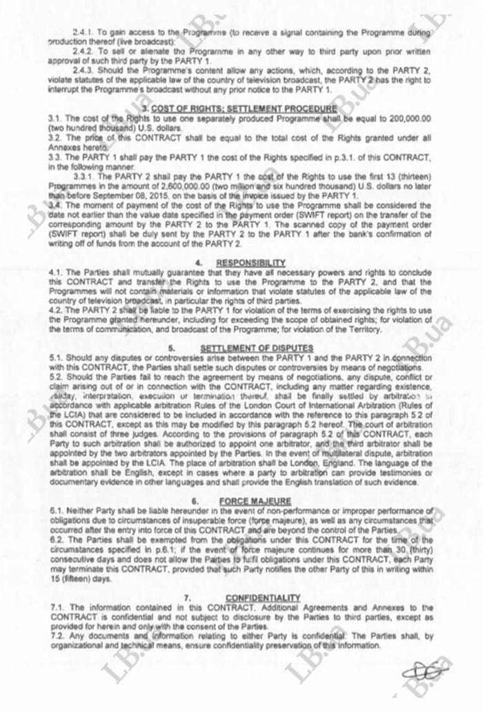 По ее словам, договор ей передал, как и обещал в прямом эфире канала "Украины", сам Коломойский. При этом она опубликовала не только документ, но и платеж на сумму более 2,5 млн долларов по контракту.