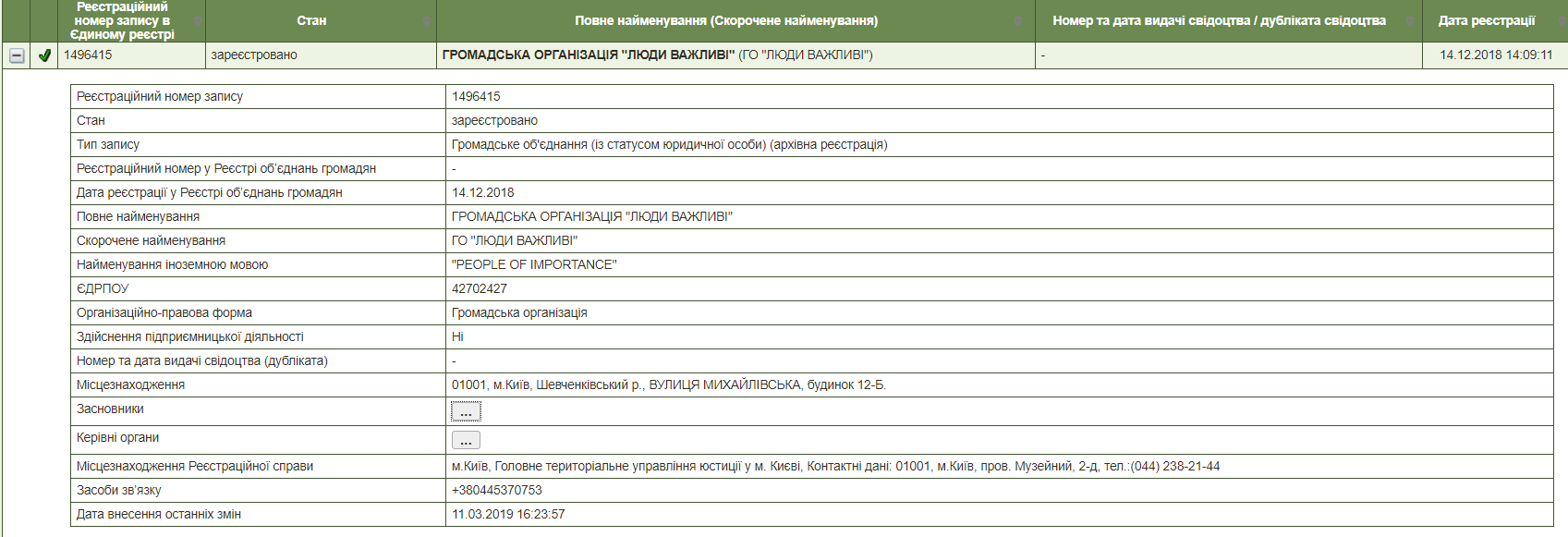 Сам Гончарук выступил модератором этой встречи. Более того, в реестре он числится как учредитель ОО "Люди важливі".