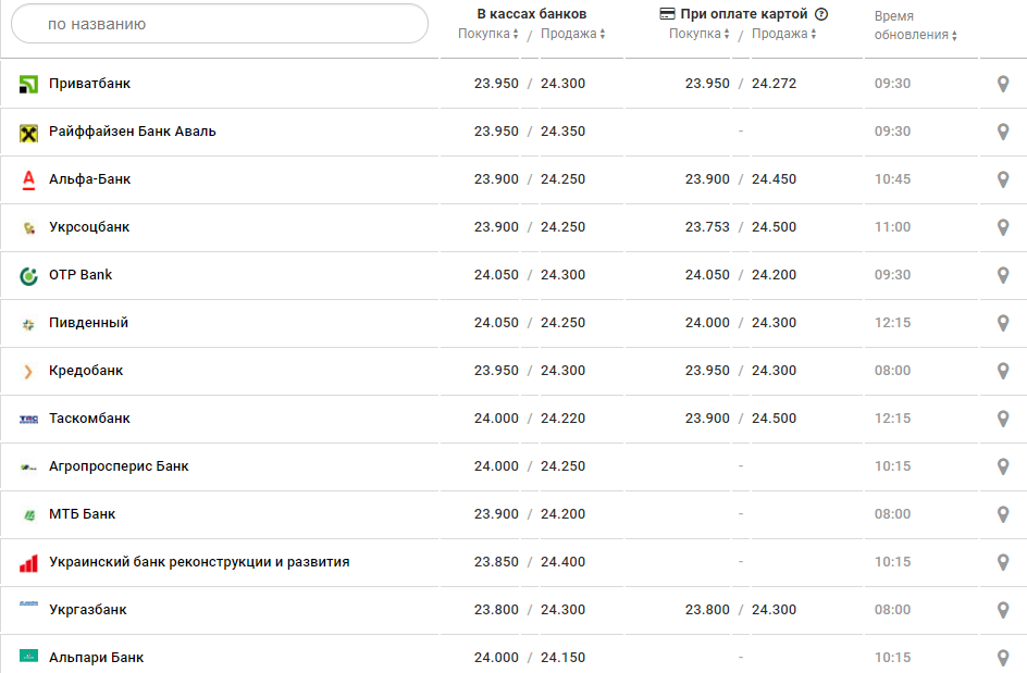 В Приватбанке стоимость валюты такая: покупка - 23,95 грн, продажа - 24,30 грн.
