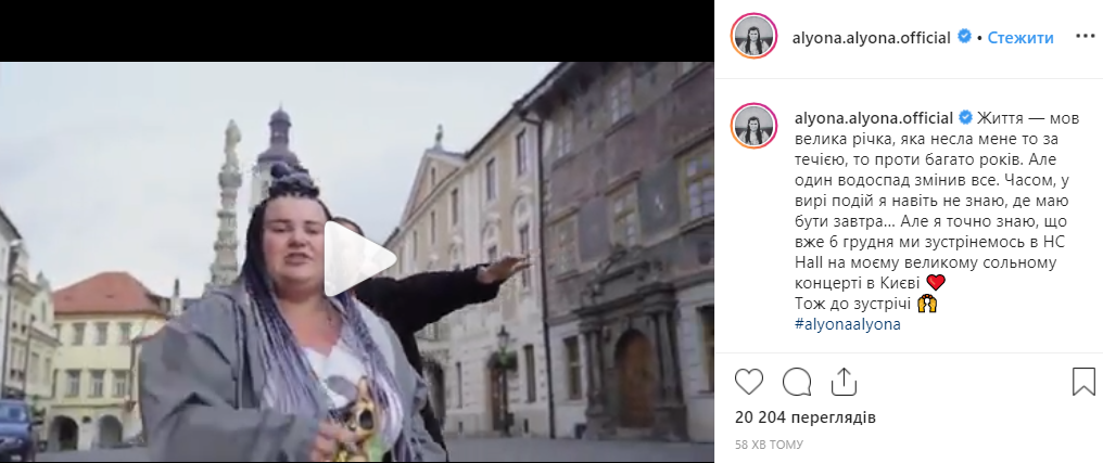 Также Alyona Alyona сообщила, что 6 декабря в Киеве в HC Hall состоится ее большьшой сольный концерт.