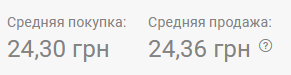 В обменках по состоянию на 08:00 средняя покупка 24,16 грн, средняя продажа - 24,22 грн.