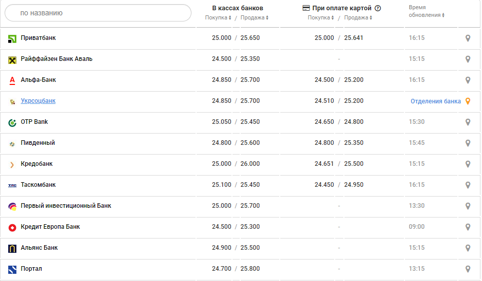 В обменках по состоянию на 08:00 средняя покупка была 25 грн, средняя продажа - 25,30 грн.