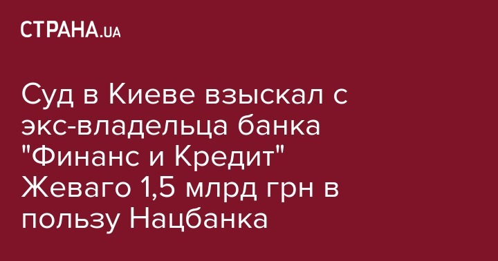 Суд в Киеве взыскал с экс-владельца банка "Финанс и Кредит" Жеваго 1,5 млрд грн в пользу Нацбанка