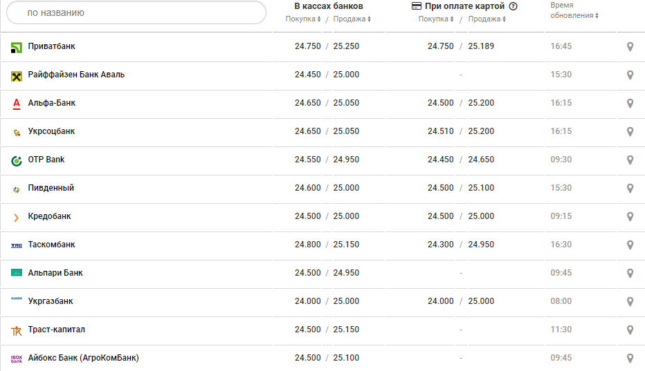 Вечером средняя покупка 24,45-24,75 грн, средняя продажа 24,95-25,25 грн. За день доллар также в среднем подорожал в покупке на 5-20 копеек в зависимости от банка, а вот продажа практически не изменилась.