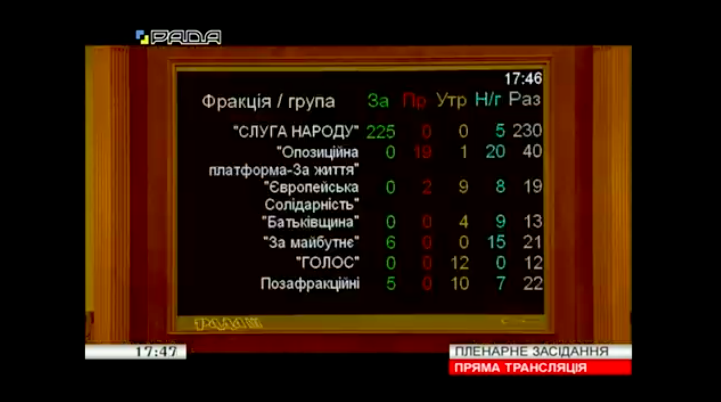 Остальные фракции или не голосовали, или воздержались. Также не голосовали пять нардепов от "Слуги народа".