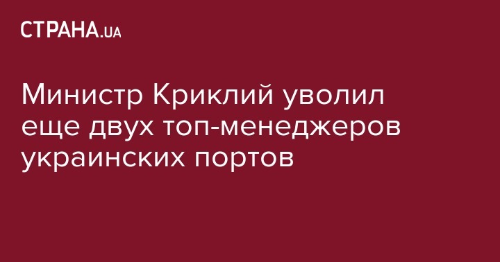 Министр инфраструктуры Украины Владислав Криклий продолжает кадровую чистку во вверенном ему хозяйстве. После увольнения руководителей Одесского, Черноморского и Белгород-Днестровского морских портов, своих должностей лишились еще два крупных руководителя на местах.