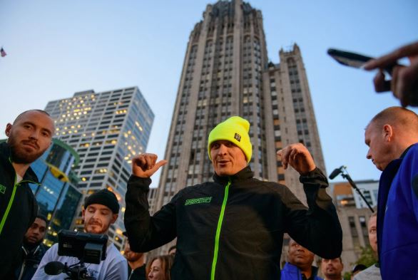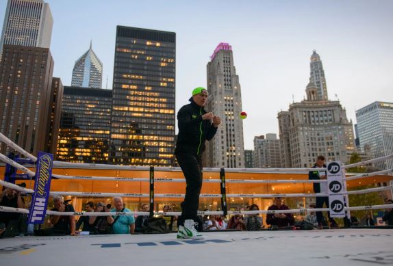 Украинский боксер Александр Усик сегодня, 10 октября, перед своим дебютным поединком в супертяжелом весе против американца Чазза Уизерспуна провел открытую тренировку в Чикаго (США). "Страна" будет вести онлайн Усика 13 октября с 05:00.