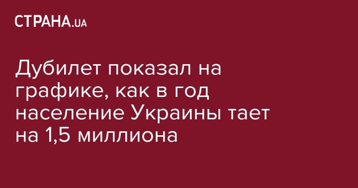Министр Кабинета министров Украины Дмитрий Дубилет показал график изменения населения страны из-за смертности и отъезда за границу и поделился планами правительства насчет изменения негативного демографического тренда. Пост на тему убыли населения чиновник опубликовал в своем Telegram.